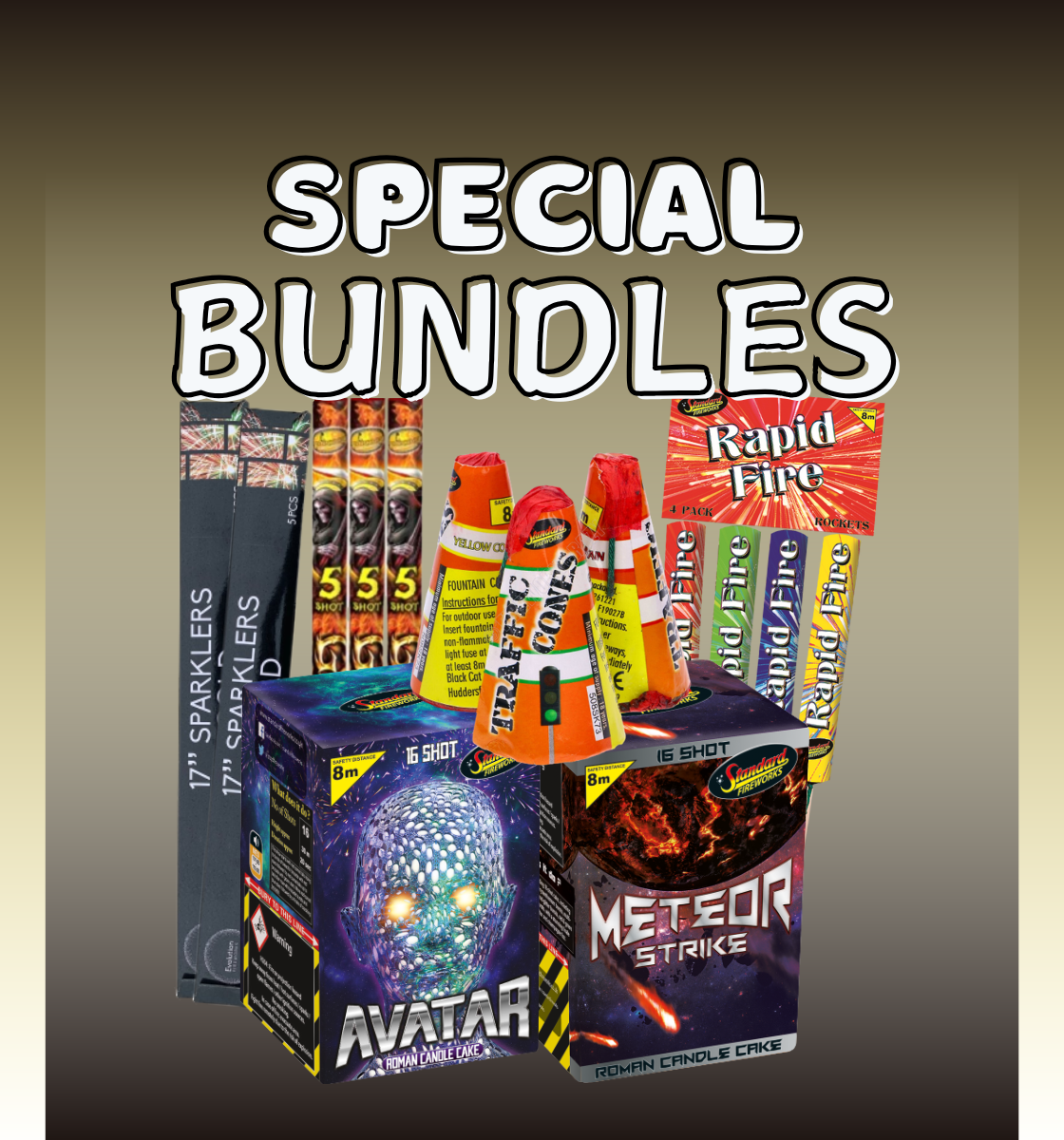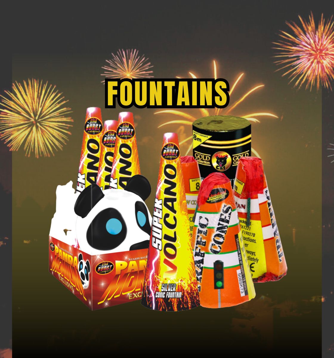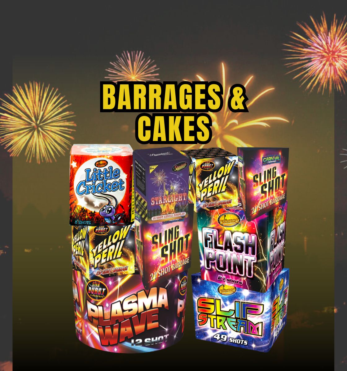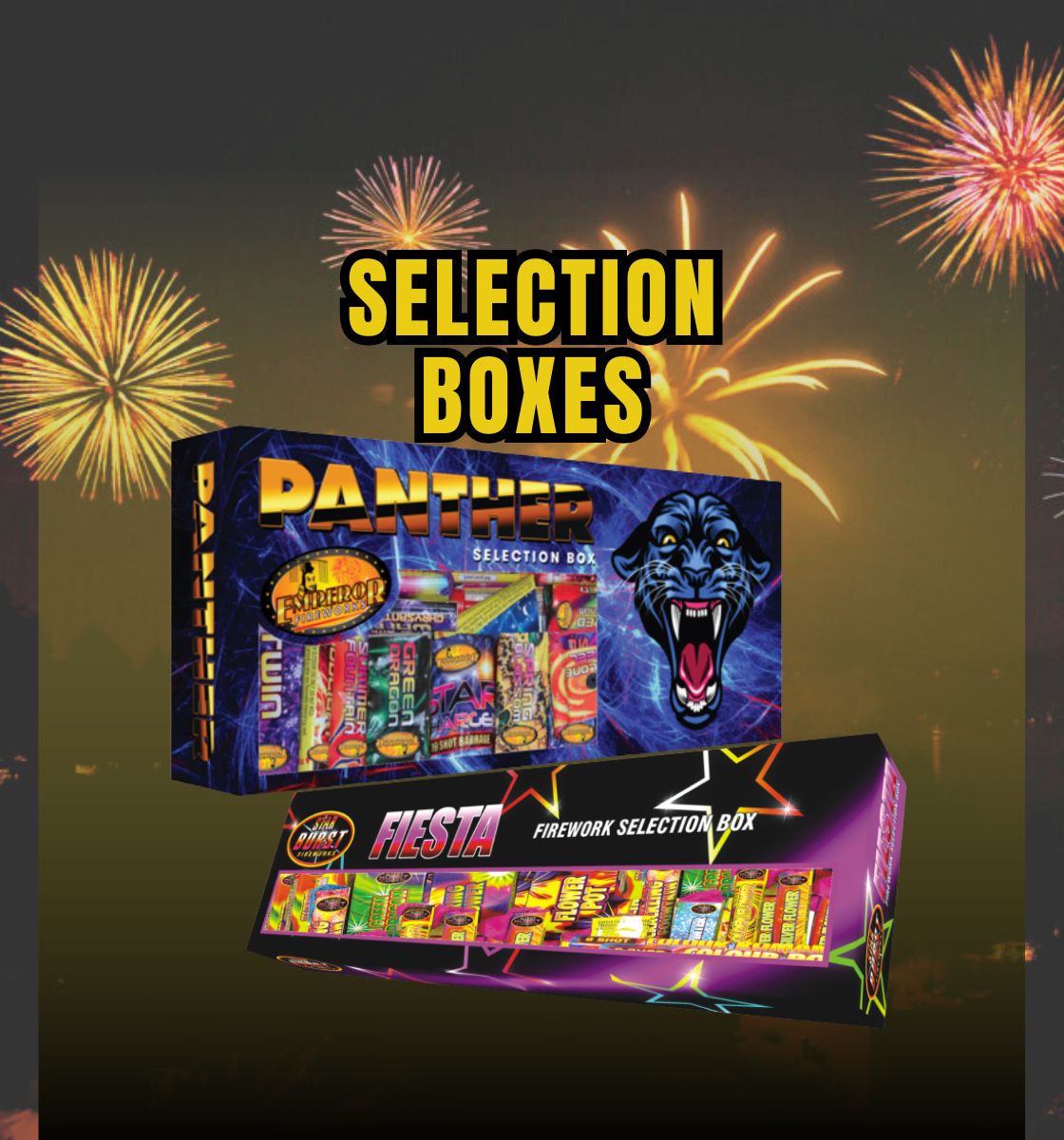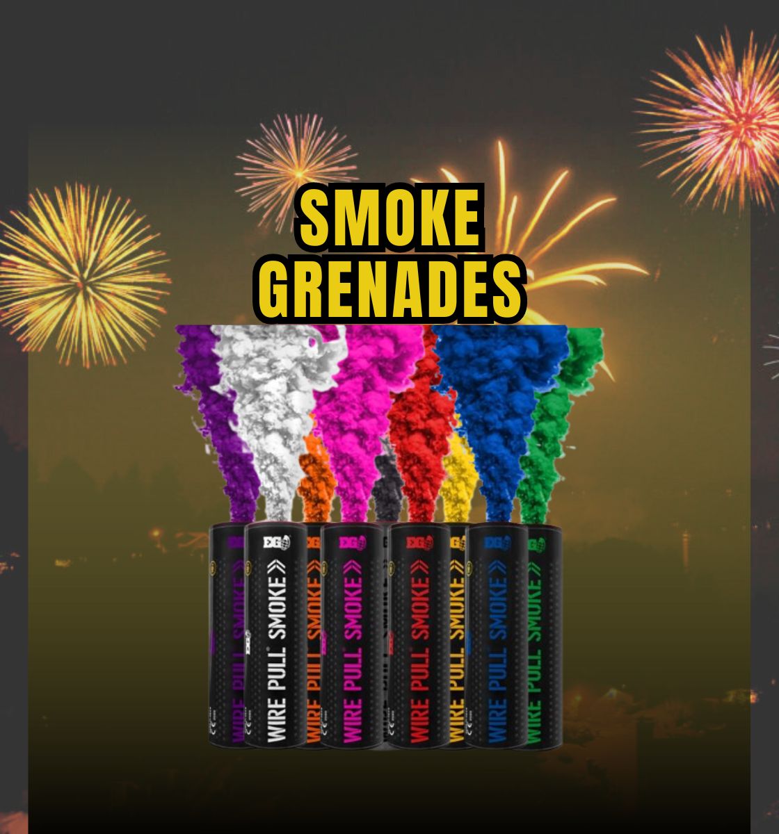 Our extensive selection of fireworks includes Selection Boxes - Perfect for those who want a little bit of everything; Barrages & Cakes - For a grand display that will wow your guests; Rockets - Shoot up into the sky for that breathtaking burst of color; Fountains - Create sparkling effects that light up the night; Fun Snaps & Sparkles - Add some fun and excitement to any gathering; Smoke Grenades - Ideal for dramatic effects in photos and videos; Roman Candles & Catherine Wheels - Classic options that never go out of style; Display Kits - Everything you need for a professional-grade show.