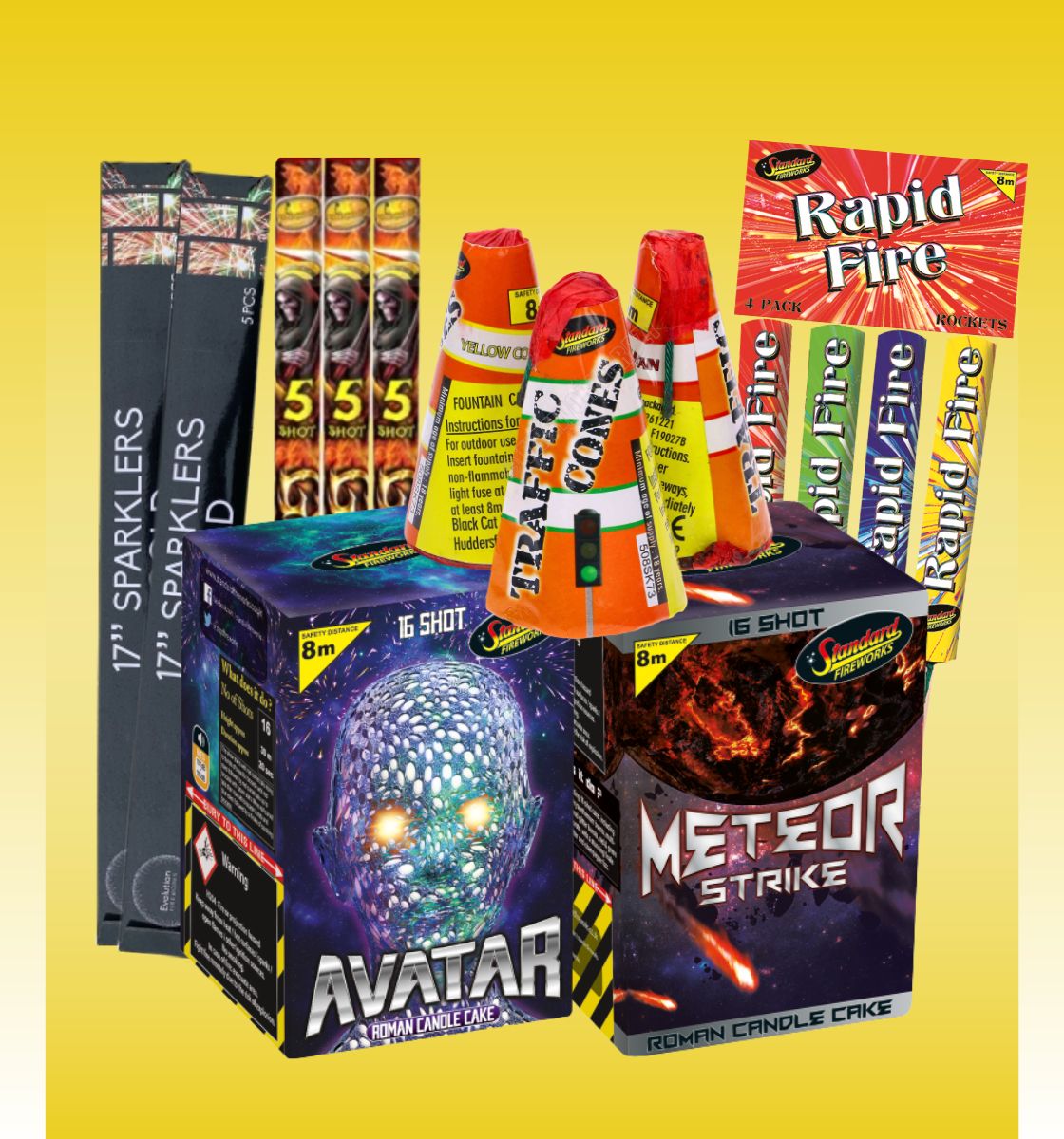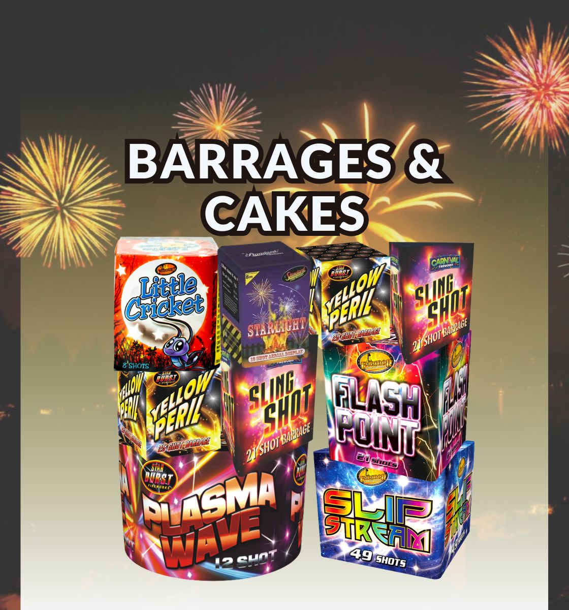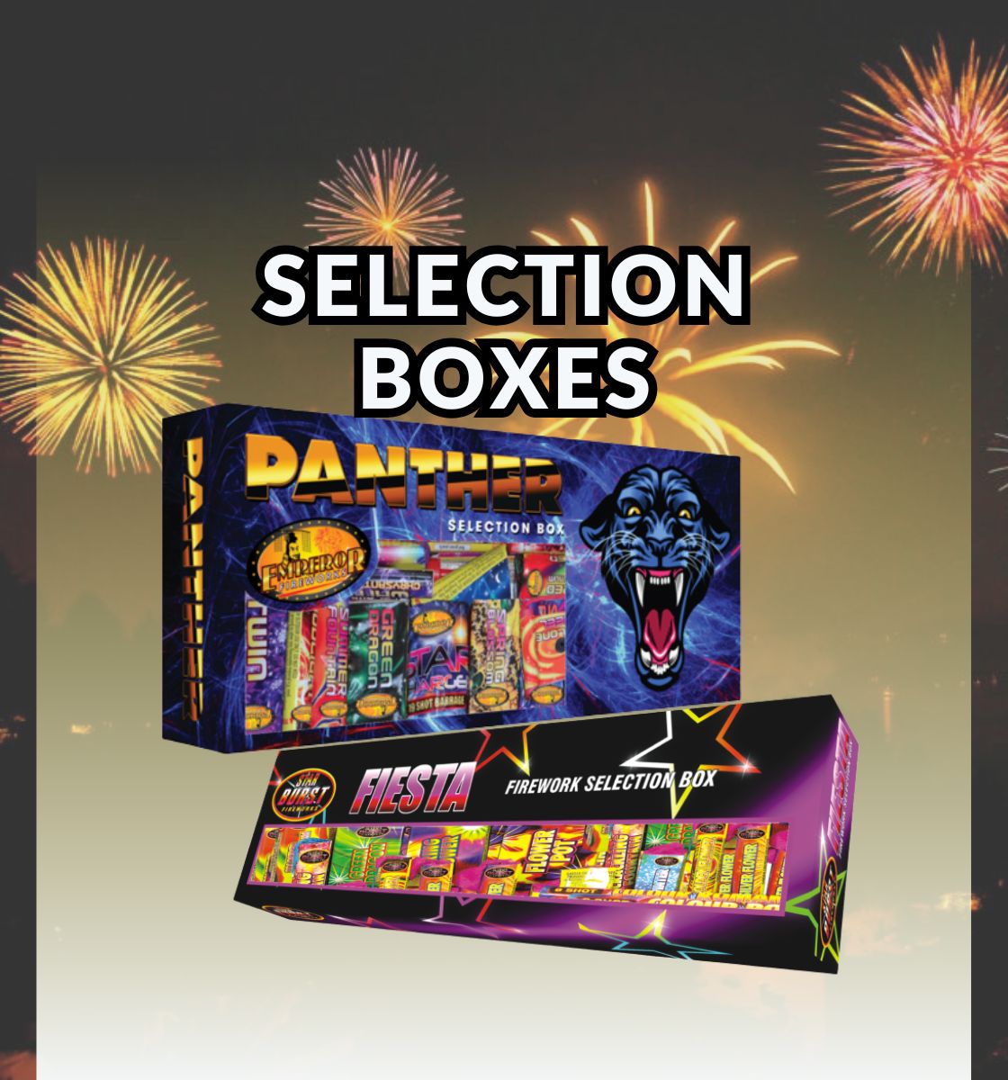Our extensive selection of fireworks includes Selection Boxes - Perfect for those who want a little bit of everything; Barrages & Cakes - For a grand display that will wow your guests; Rockets - Shoot up into the sky for that breathtaking burst of color; Fountains - Create sparkling effects that light up the night; Fun Snaps & Sparkles - Add some fun and excitement to any gathering; Smoke Grenades - Ideal for dramatic effects in photos and videos; Roman Candles & Catherine Wheels - Classic options that never go out of style; Display Kits - Everything you need for a professional-grade show.