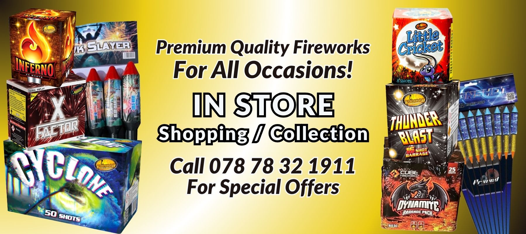 You can come and visit our Fireworks Shop in London which is open 7 days a week all year round. We offer Same Day Fireworks Delivery Service to London and surrounding areas.