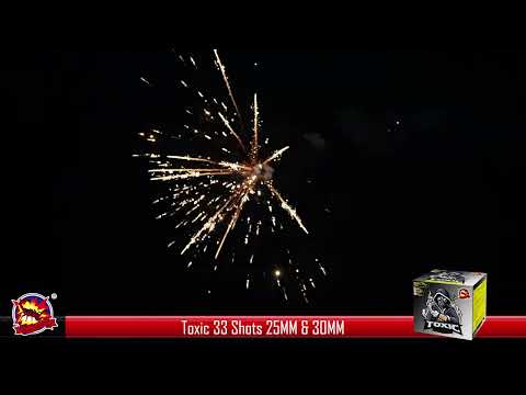 A dynamic mix tube firework featuring a potent fusion of 25mm and 30mm tube, boasting an explosive display of 33 shots. Toxic promises an unforgettable experience that will linger in the memory long after the sparks fade.